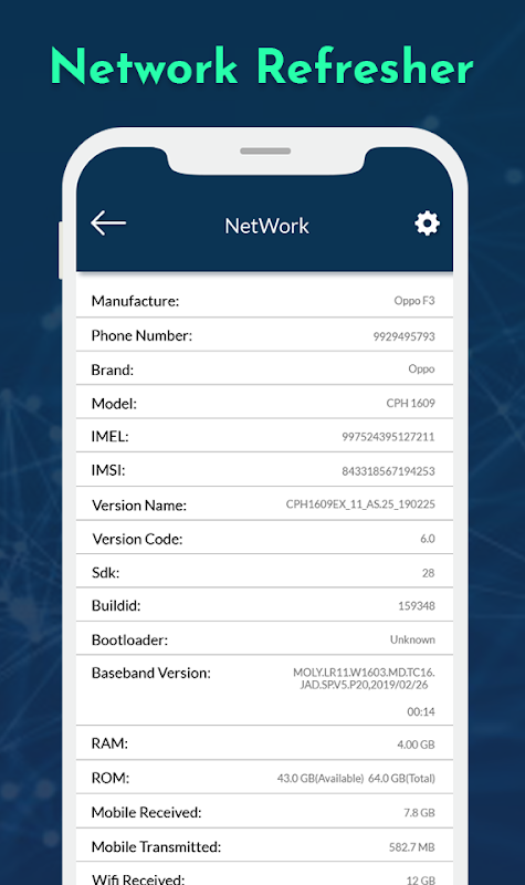 - Get complete information of Phone Information like: camera details, screen resolution, CPU, etc.