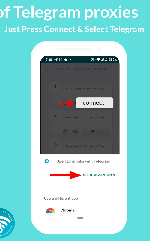 Met deze Auto Proxy-applicatie hoeft u geen filteronderbreker of vpn te gebruiken om verbinding te maken met Telegram. Omdat u op elk moment verbinding kunt maken met een proxy. vpn vertraagt de internetsnelheid van je telefoon, dus je hoeft geen vpn te gebruiken om verbinding te maken met Telegram met deze applicatie.