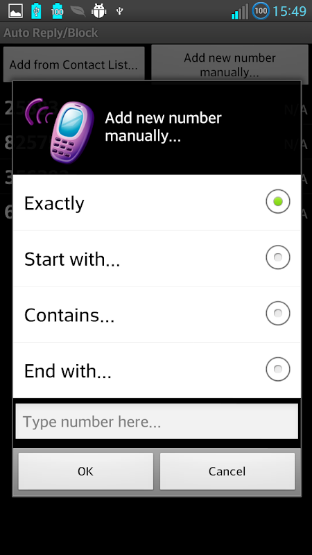 - Or manually: here being able to choose whether to enter the entire phone number or the first digits or middle digits or the last digits.