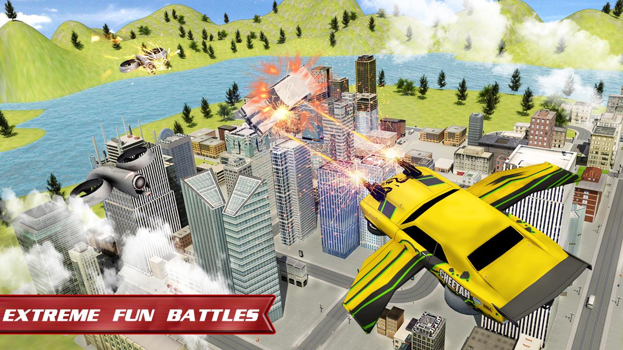 Do you like robot converting games? Or may be flying Robot car simulator? Then this game is best for you, Get your normal sports car and convert your real car steel flying robot car and fly like an airplane in the sky of New York City, Make war with online enemy robots, fight with them and destroy all of these flying robots mech machine and save the humanity and be the hero of the futuristic city.
