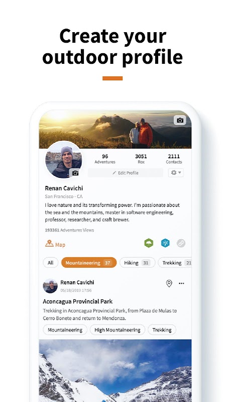 In elk avontuur kun je rapporten, foto's, video's, tracklogs en checklists opnemen. U kunt bijdragen met de buitengemeenschap en tegelijkertijd een geschiedenis van uw prestaties maken!