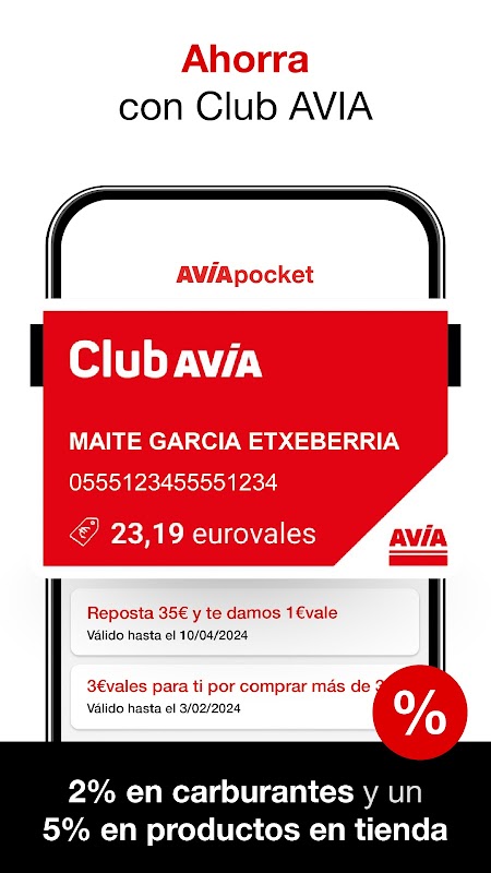 Door AVIA pocket te downloaden, wordt u onderdeel van de AVIA Club, waarmee u besparingen op brandstof, kortingen in winkels of op AVIA-producten en exclusieve promoties bij samenwerkende bedrijven kunt krijgen. Deze kortingen worden automatisch op uw Club AVIA-kaart geaccumuleerd in de vorm van EUROVALES.