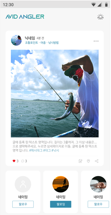 AvidAngler ( 아비드앵글러 )를 이용하여 편리한 낚시SNS 이용하세요.