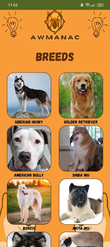 Ontdek de wereld van honden als nooit tevoren met Awmanac! Uw go-to-app voor een uitgebreide almanak over verschillende hondenrassen. Ontdek gedetailleerde profielen, boeiende feiten en verbluffende afbeeldingen van uw favoriete hondengenoten. Maar dat is nog niet alles: Awmanac gaat verder dan informatie. Neem deel aan een leuke en interactieve quiz om je kennis te testen en meer te leren over de diverse wereld van hondenrassen. Of je nu een doorgewinterde hondenliefhebber bent of een nieuwsgierige beginner, Awmanac is de perfecte metgezel voor het ontketenen van de fascinerende verhalen en eigenschappen van de beste vriend van de mens. Download nu en begin aan een heerlijke reis door het hondenkoninkrijk!"