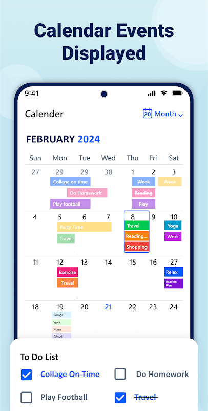 🗒️ Kalendermodus om notities in de kalender te ordenen en tijd efficiënt in te plannen.