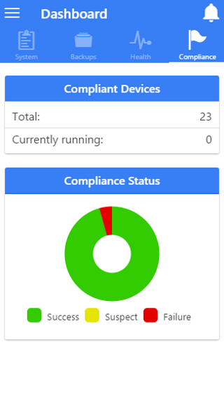 - Summary dashboard with overall status of your system and the configured devices (backup, health and harmonization)