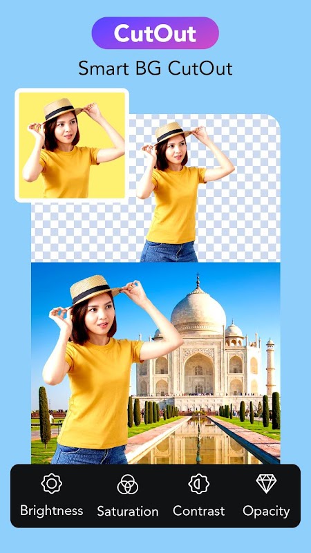 Start App ➤Choose a photo or directly from camera ➤erase photo background ➤Edit on cut photo ➤Transparent Image ➤Adjust Edited Photo in your Favorite Insert images with different HD Picture Background ➤Save your creation intoSD Card & share it on your Social Media platform or wallpaper!!
