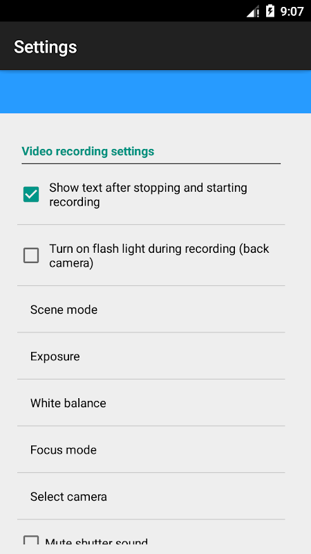 - Select "mute shutter sound" to stop the camera shutter sound (may not work in some devices)