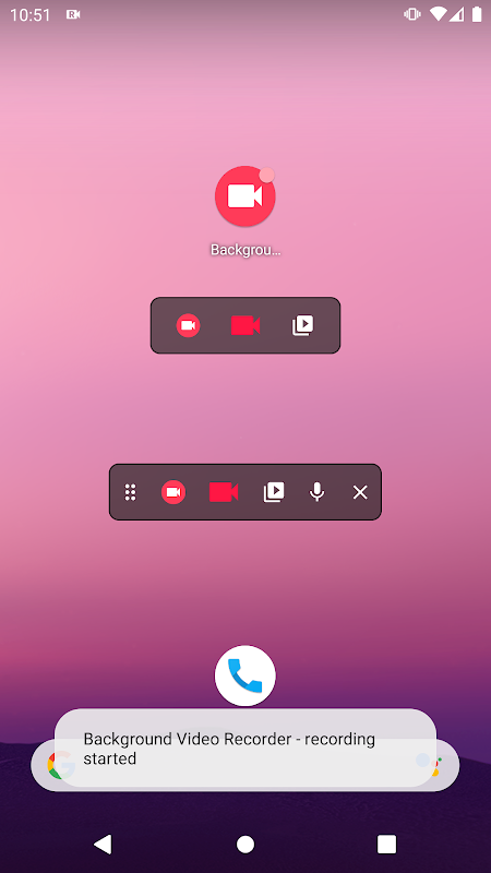 Applicatie om video op de achtergrond op te nemen met behulp van een widget, meldingspaneel of pop-up bovenop alle applicaties.