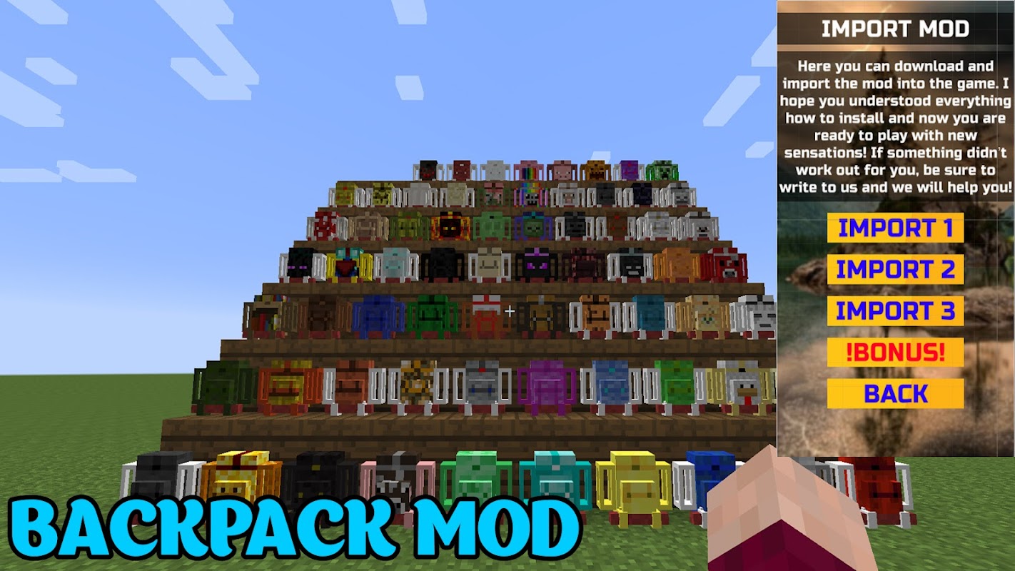 💪 Backpack for Minecraft PE This is a mod installation for MCPE game.💪