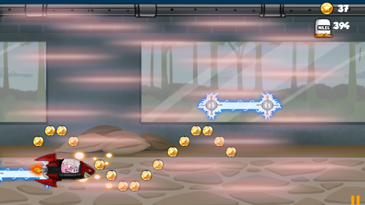 Join the Pig as he breaks into a secret laboratory to commandeer the experimental jetpacks malicious scientists claws. After takeoff, simply touch the screen to ascend and release to descend, raining made bullets, bubbles, rainbows skies-in and lasers to the ground while you fly to score more and higher !