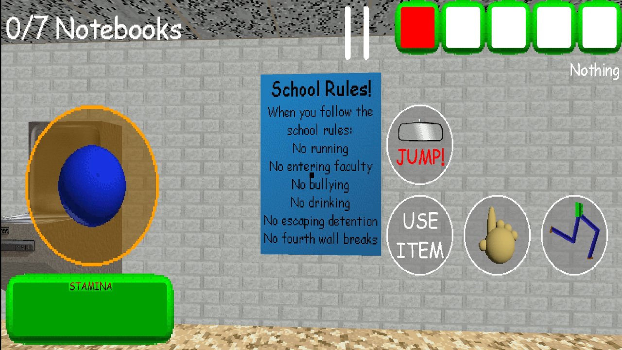 In dit spel BALDIS BASICS REMASTERED Ga verschillende nieuwe uitdagingen en veel nieuwe niveaus aan! Je moet snel ontsnappen door zoveel mogelijk notitieboekjes te verzamelen. Win in talloze spelmodi, die allemaal unieke eigenschappen hebben. Leer meer over de verborgen geheimen van de school, inclusief codes en onontdekte hoekjes. Maak je klaar om enkele zeer ongebruikelijke en fascinerende scenario's te ervaren terwijl je plezier hebt. Test je grenzeloze wijsheid en geduld!