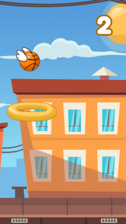 Touch the ball to keep it in the air and try to pass it through the center of the donuts. Avoid the top and bottom of the screen. Collect power-ups for additional points and features.
