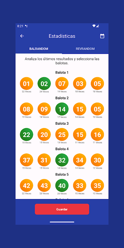 BalRandom is een applicatie die is ontworpen om op een eenvoudige manier de meest recente resultaten te geven. De applicatie stelt je in staat om de statistieken van de meest en minst frequente nummers te bekijken, en biedt je ook de mogelijkheid om een willekeurig nummer te genereren om mee te spelen.