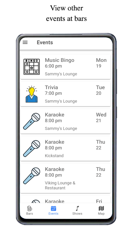Vind speciale aanbiedingen, evenementen en shows in bars bij jou in de buurt
