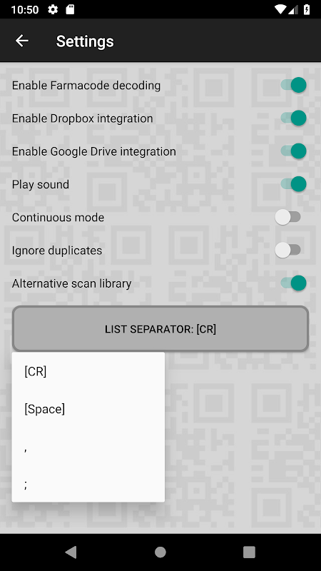 Tik op "DOE IETS MET GESCANDEERDE BARCODES" om te selecteren wat u wilt doen met de gescande codes.