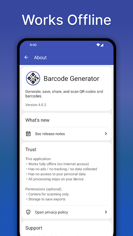 Barcode Generator is een offline QR- en barcode-app voor kaarten, tickets en opgeslagen codes die je altijd bij de hand wilt hebben.