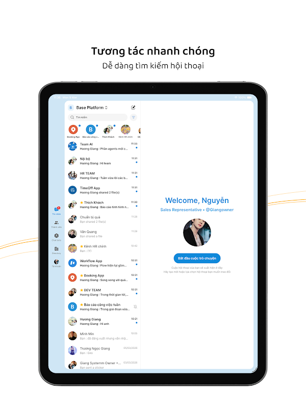 Base Workplace is een realtime berichtenapplicatie die is ontworpen om communicatie snel, veilig en gemakkelijk te maken op elk mobiel apparaat. De applicatie ondersteunt het uitwisselen van berichten, het verzenden van bestanden en afbeeldingen, pushmeldingen en stabiele gegevenssynchronisatie, zelfs in omgevingen met een lage bandbreedte.