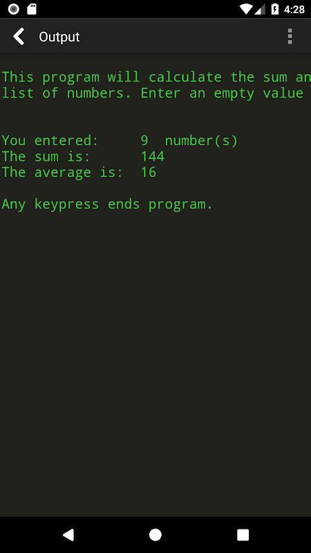 - Dit is een batchcompiler; interactieve programma's worden niet ondersteund. Als uw programma een invoerprompt biedt, voert u de invoer in het tabblad Invoer in voordat u gaat compileren. Zie het tabblad Referentie in de app voor codevoorbeelden