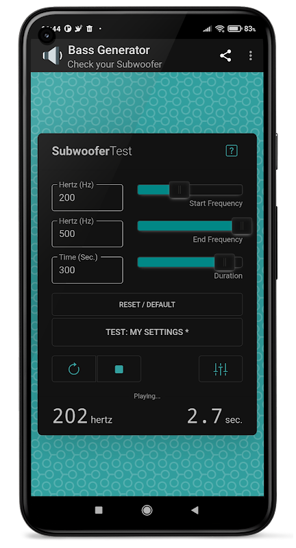 "Bass Generator" is een eenvoudige mobiele applicatie voor het testen van een subwoofer. Met de basgenerator kunt u uw subwoofer of laagfrequente luidspreker controleren en aanpassen. De applicatie kan offline werken zonder internetverbinding.