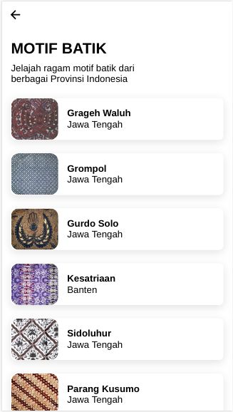 a. Provinsi: Menampilkan ragam motif batik berdasarkan asal provinsinya