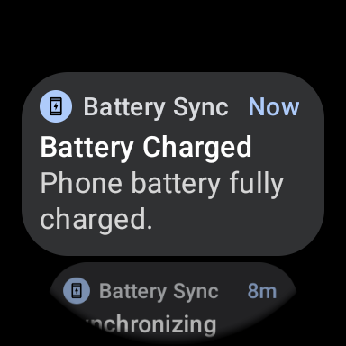 Deze applicatie kan worden gebruikt om de batterij van uw telefoon te synchroniseren met uw Wear OS-horloge, zodat u deze in één oogopslag kunt bekijken, en u kunt ook meldingen op uw telefoon/horloge inschakelen wanneer het apparaat van de bijbehorende app klaar is met opladen (dat wil zeggen een horloge ontvangt melding wanneer uw telefoon 100% heeft bereikt.