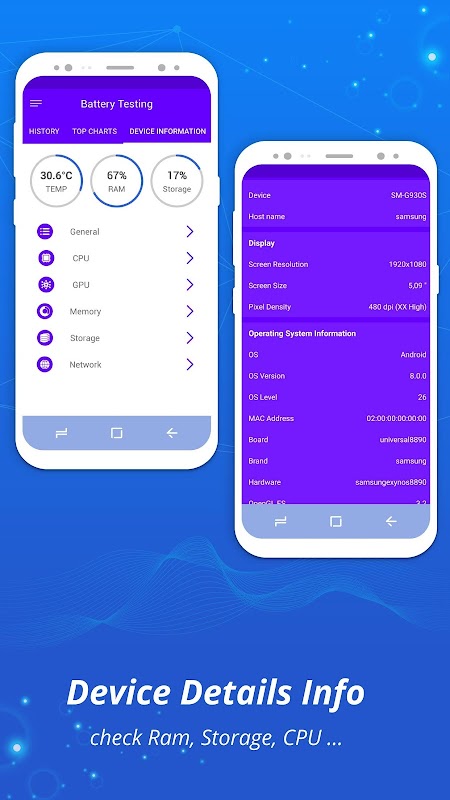 - Wereldwijde batterijscore: u kunt de score van andere apparaten kennen, vergelijken om te weten of uw batterij goed is of niet.