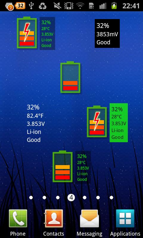 Duidelijk, heel makkelijk te lezen, mooie batterij widget in 2D die u voorziet van veel informatie over de batterij in de telefoon geïnstalleerd.