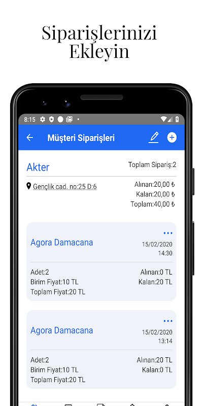 Bu uygulama sayesinde müşterilerinizi, çalışanlarınızı ve ürünlerinizi kontrol edebilirsiniz. Müşterilerinizin siparişlerini kolayca yönetin ve onlara özel fiyatlı ürünlerinizi kolayca belirleyin.Çalışanlarınızı sisteme siz üye yapın ve çalışanların sistemde sizinle aynı bilgilere ulaşmasını engelleyin.Haftalık aylık ya da gün gün olarak ne kadar ürün sattığınızı ve hangi ürün üründen ne kadar sattığınızı kolayca seçip görebilirsiniz.