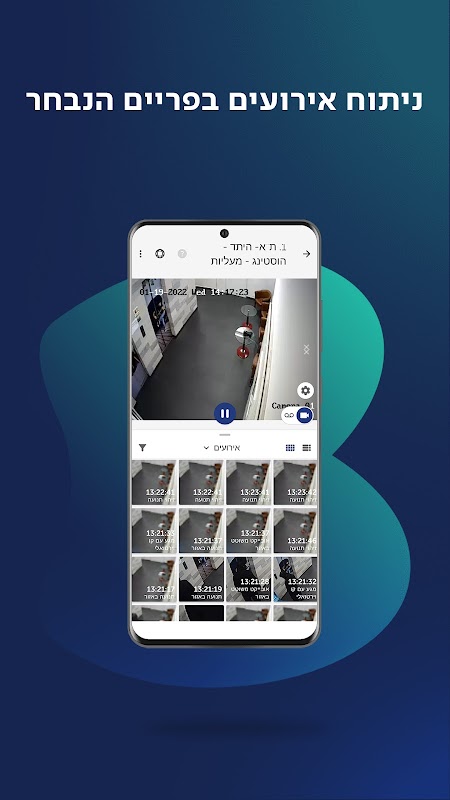 • האפליקציה מאפשרת צפייה בכל מצלמה המקושרת לשירות ברמת סניף, אתר או עיר