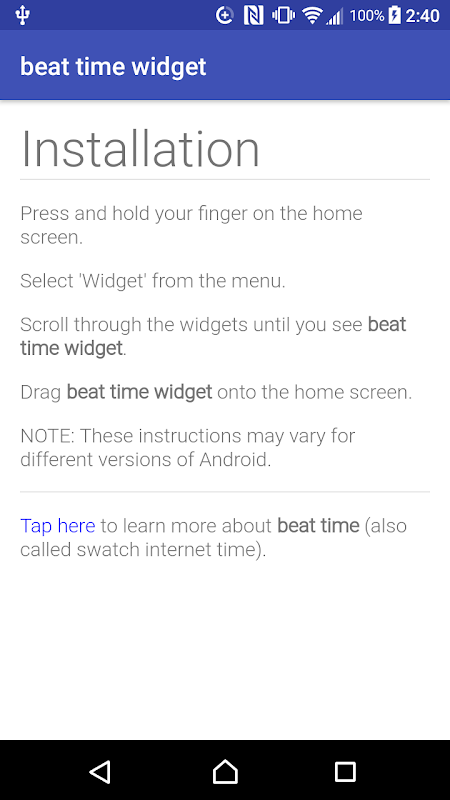 Om gebruik te maken, gewoon downloaden van de app en installeer de beat tijd widget net als elke andere widget op je platform.