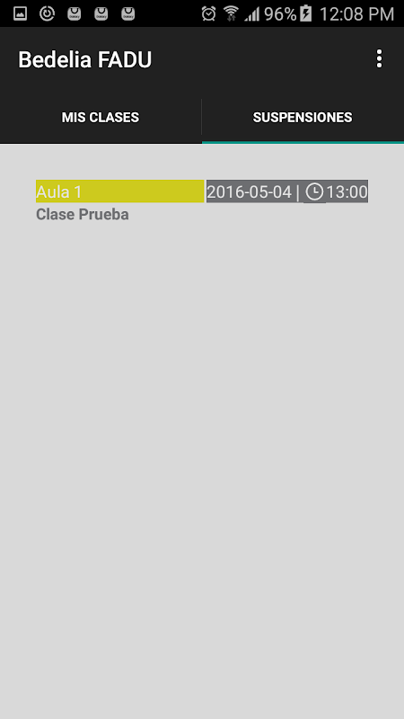 De applicatie Fadu Bedelia - UNL kunnen lessen en schorsingen tonen