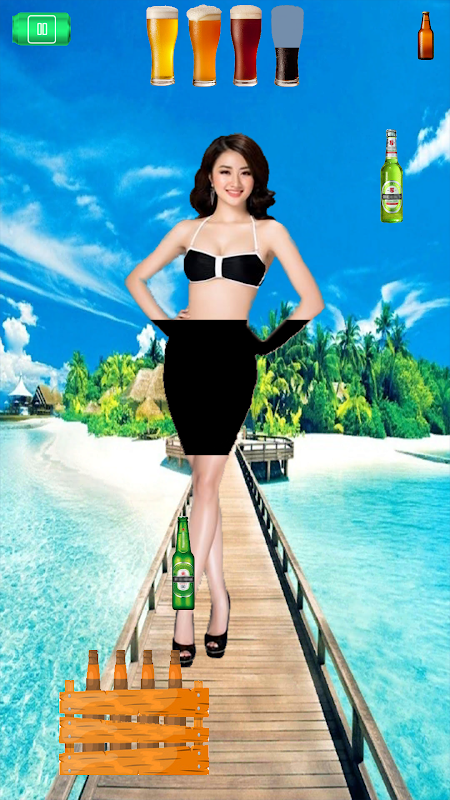 Meisje verborgen door een zwart scherm, je moet veel bier vangen om te ontgrendelen.