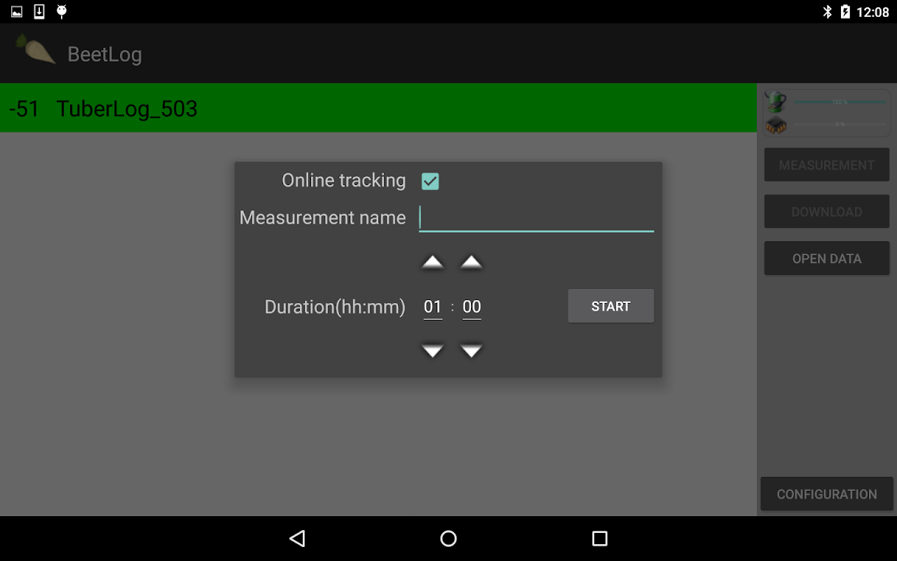 Die App dient der Durchführung und Auswertung von Messungen mit der elektronischen Rübe BeetLog. Sie bietet folgende Funktionen: