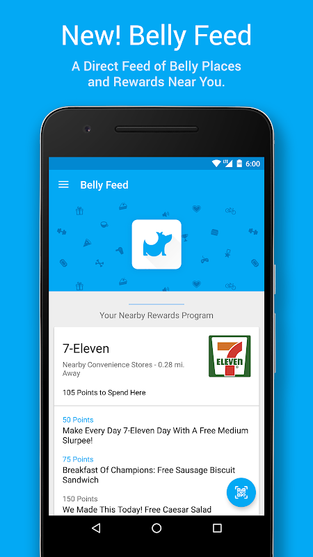 Met Belly, bieden wij een klantenkaart om de rest te vervangen. Koppel de mobiele app om uw fysieke BellyCard die kan worden opgehaald bij elk Belly Business. Gebruik de app "Plaatsen in de buurt" functie om locaties te vinden om Belly wanneer je onderweg bent in de stad. Verdien een gratis kopje koffie bij de donut winkel in de straat. Noem de Sandwich van de Maand bij uw plaatselijke broodjeszaak. Voor de eerste keer, kunt u uw taart en eet het ook, of op zijn minst de mogelijkheid duwen hem in het gezicht van uw bakker.