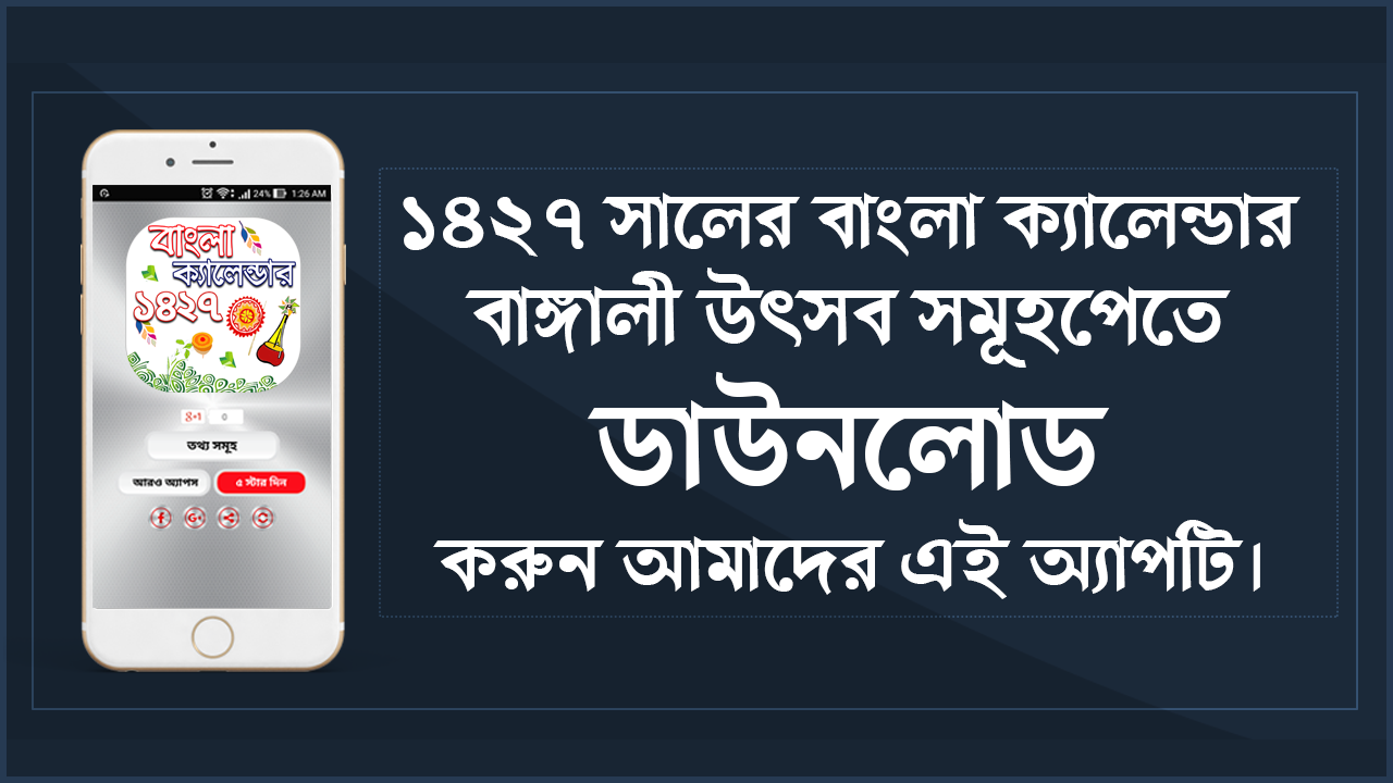 বাঙ্গালী পঞ্জিকা 1427 এবং বাঙ্গালী উৎসব সমূহ জানুন এই অ্যাপে। এখনই ডাউনলোড করুন এই অ্যাপটি।