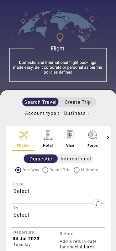 Medewerkers kunnen naadloos vluchten, hotels, bussen, reisverzekeringen, taxi's, visa, forex en treinreizen zoeken en boeken – allemaal binnen het bedrijfsbeleid en de goedkeuringsworkflows. De app ondersteunt ook wijzigingen zoals het wijzigen van planningen of annuleringen wanneer plannen veranderen, zodat elk aspect van zakelijke reizen wordt gedekt.