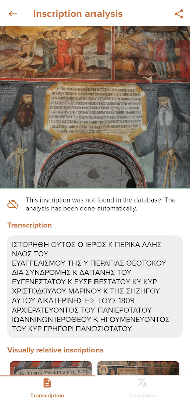 Met BESSARION heeft u de mogelijkheid om meer te weten te komen over elke Byzantijnse inscriptie, om de transcriptie ervan rechtstreeks op uw scherm te zien, evenals de natuurlijke taalverwerking ervan.
