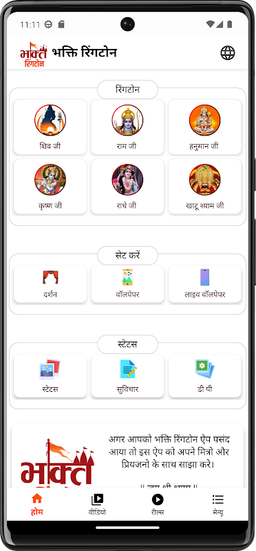 Bhakti Ringtone (भक्ति रिंगटोन) heeft een verzameling beltonen en achtergronden.