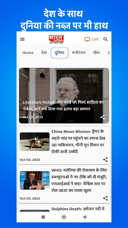 We draaien momenteel op tv als nieuwszender - Bharat Express. Het kanaal dat spreekt namens Bharat, het kanaal dat spreekt voor Bharat en over Bharat. Met honderden verslaggevers in alle uithoeken van India doen we ons best om alles te verslaan dat belangrijk is voor kijkers, van wereldwijd nieuws tot hyperlokale gebeurtenissen.