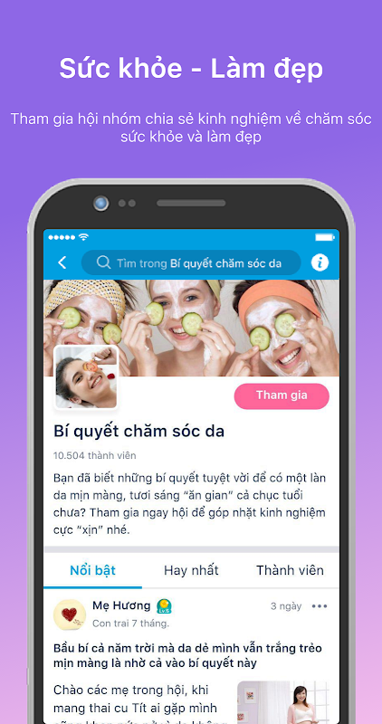 Hơn 500.000 thành viên hỏi đáp và chia sẻ kinh nghiệm về tất cả các chủ đề sức khoẻ, giáo dục, gia đình và cuộc sống: