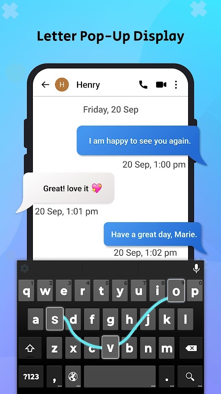 Bovendien bevat dit grote toetsenbord voor Android voorspellende tekst- en autocorrectiefuncties om de typsnelheid en nauwkeurigheid te verbeteren. Deze functies helpen door woorden voor te stellen terwijl u typt en door veelvoorkomende typefouten automatisch te corrigeren, waardoor de algehele typervaring wordt verbeterd en frustratie wordt verminderd.
