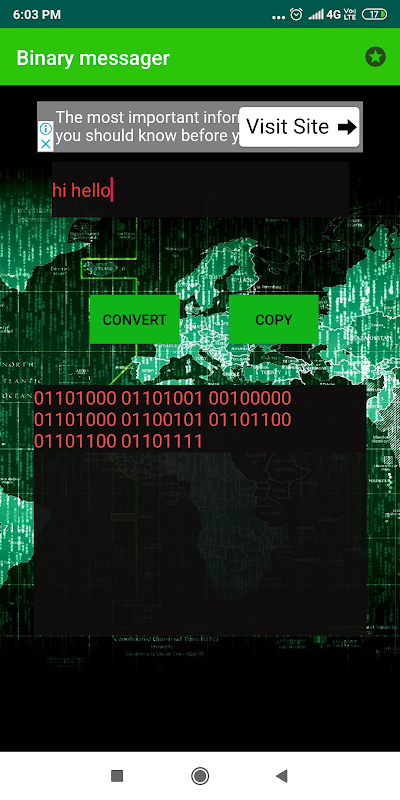 Met deze binaire encoder-app kunt u gecodeerde berichten maken. Speel met je vrienden door dit soort gecodeerde berichten te verzenden