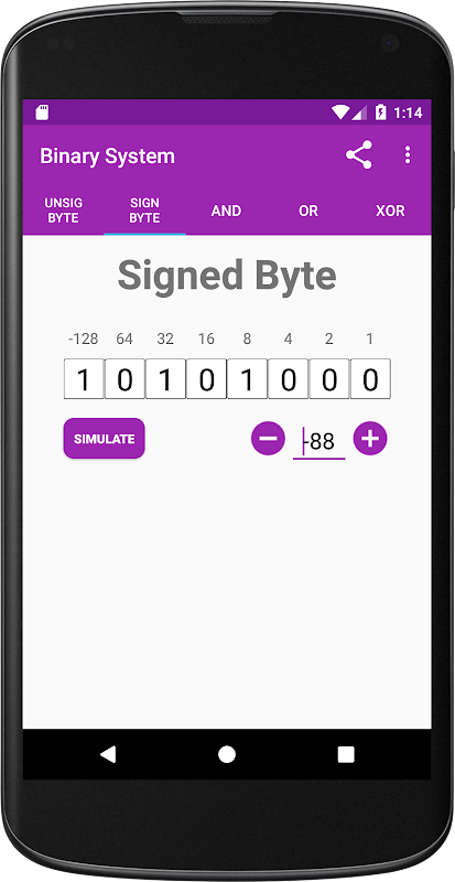 Binary System is een eenvoudig hulpmiddel voor het leren van het binaire systeem, binaire code.