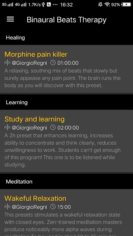 - Het zal continu geluid bieden, het genereren van binaural beats in real time, geen lussen;