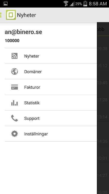 Applikationen ger dig en översikt av ditt konto hos Binero,.