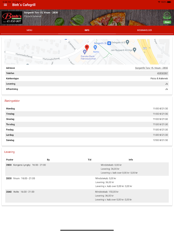 Med Binhs Cafegrill app op telefonen, har du madbestilling lige ved hånden.