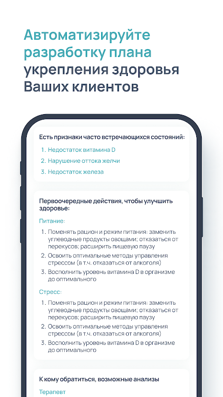 - Automatiseer de ontwikkeling van een plan om de gezondheid van uw cliënten te verbeteren.