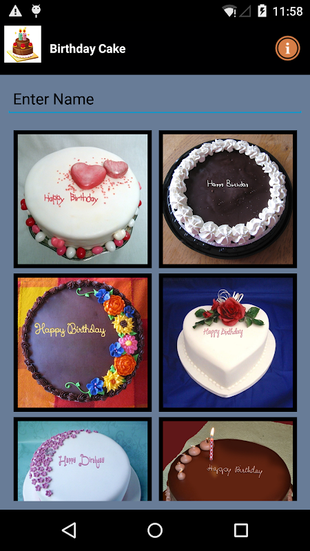 Users may save the birthday cake images and share it via Facebook, Twitter, email, WhatsApp, Skype, MMS, and other sharing apps.