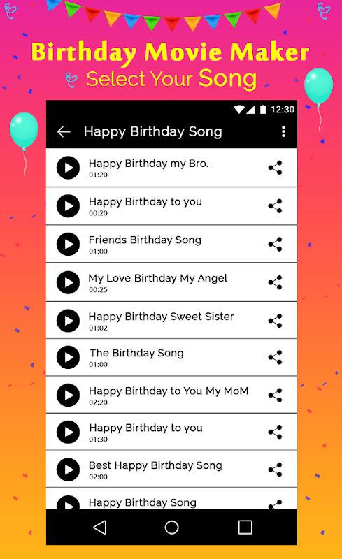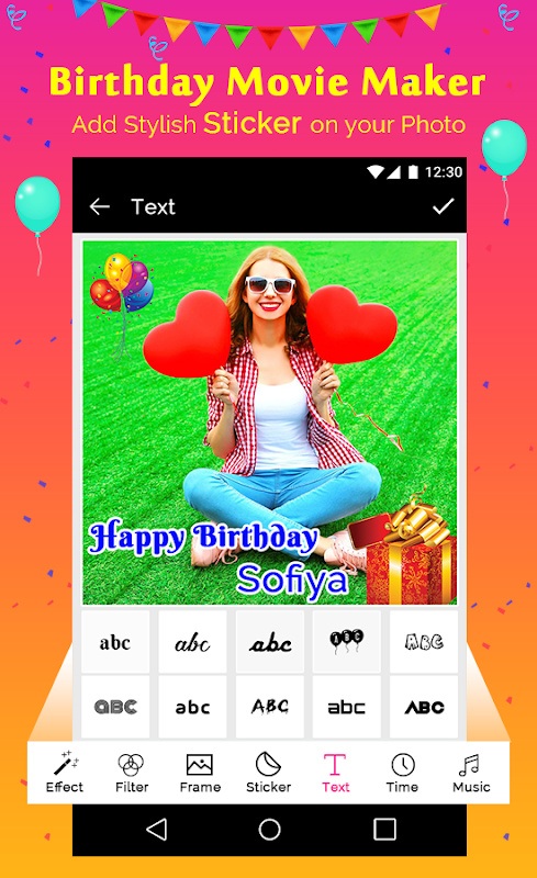 Happy Birthday Movie Maker application through you makes your own birthday video.